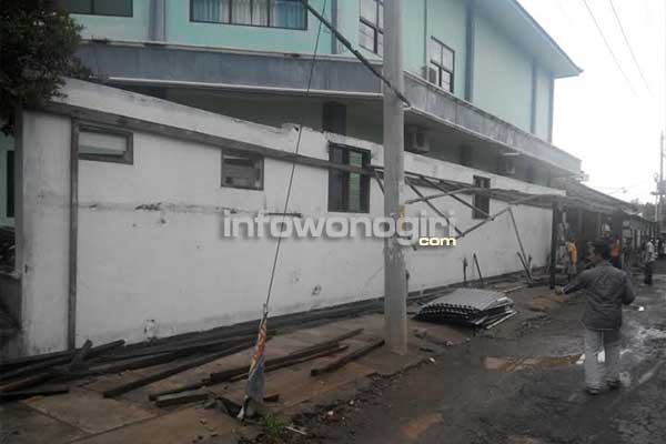 Humas RS Muhammadiyah Selogiri Supriono belum berhasil dikonfirmasi, staf Wakil Direktur juga sudah dimintai keterangan. Tetapi dia tidak berkenan dikonfirmasi. Tampak sejumlah pekerja sedang membuat kembali atap parkir yang dirusak. (N 420)